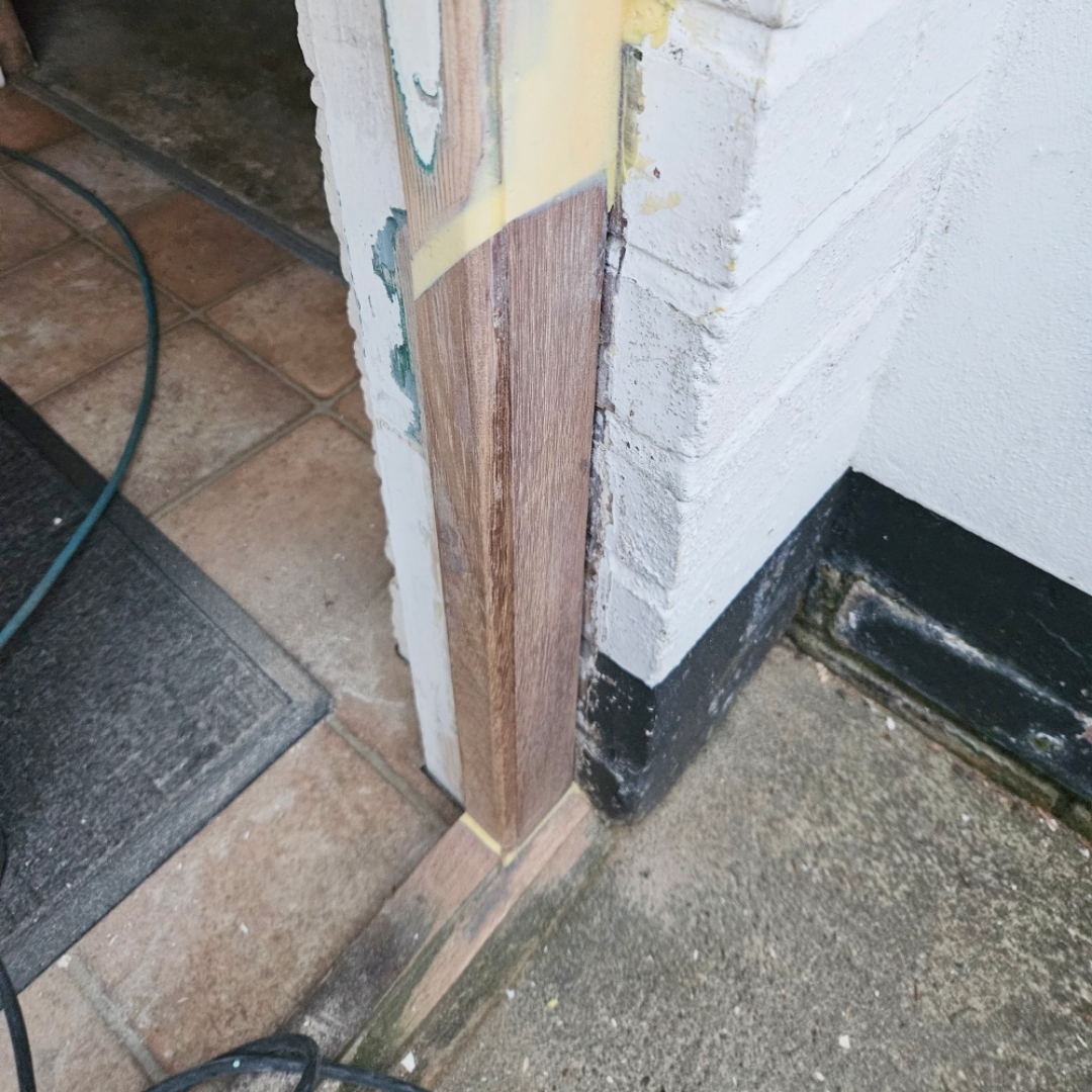 This door frame had been previous repaired by another contractor using a traditional splice. This repair had failed and caused the rot to spread further into the door frame.