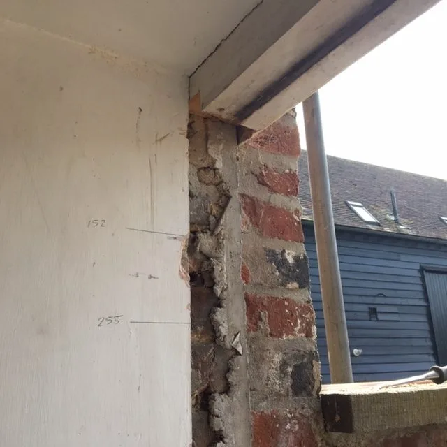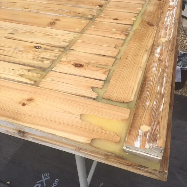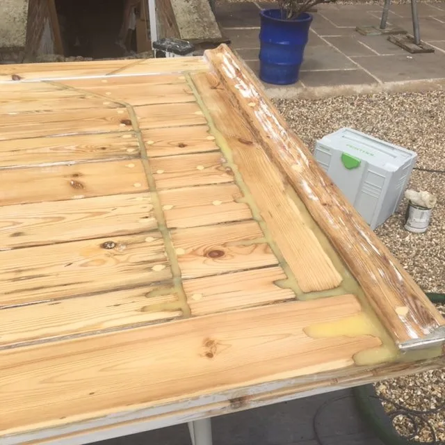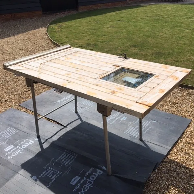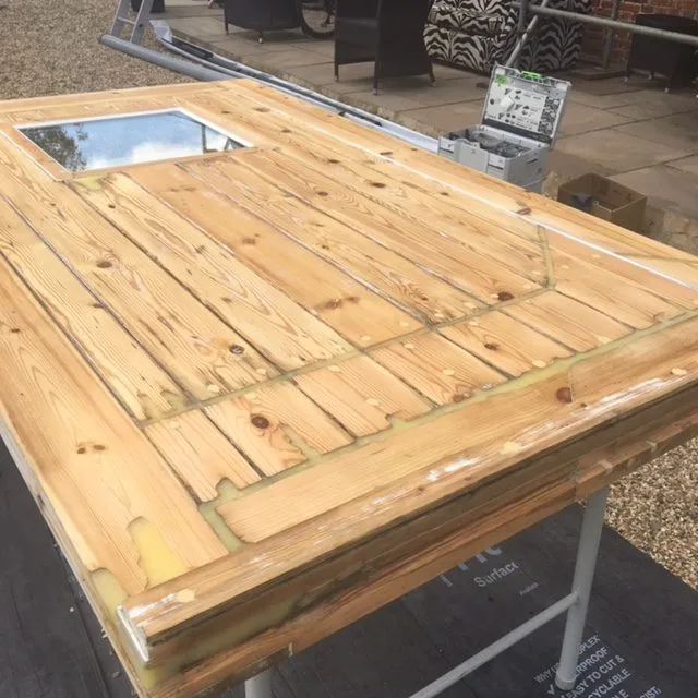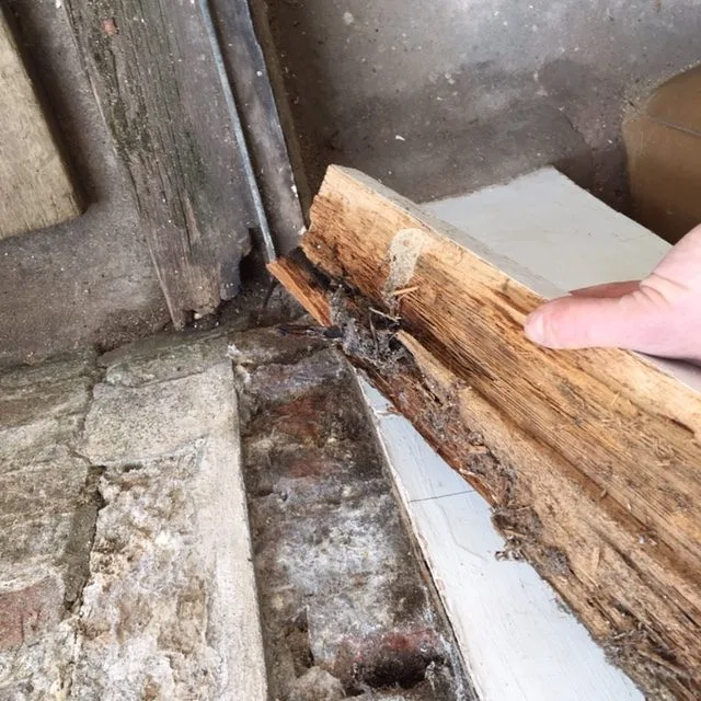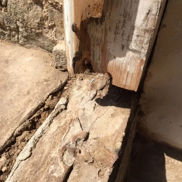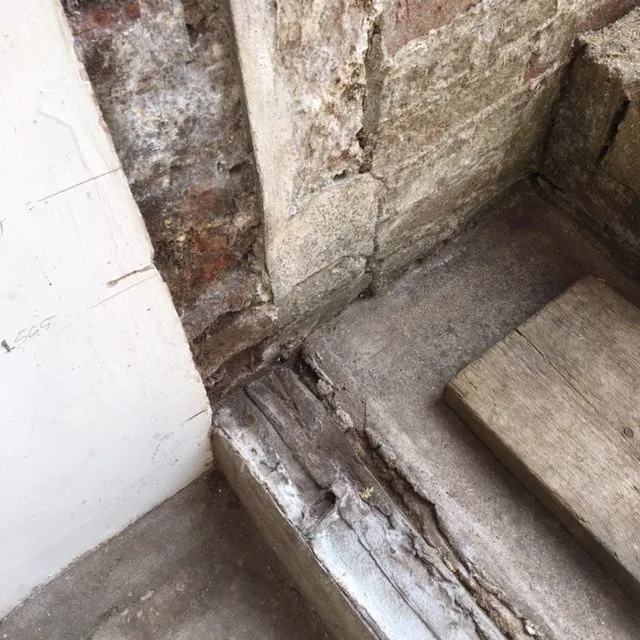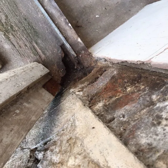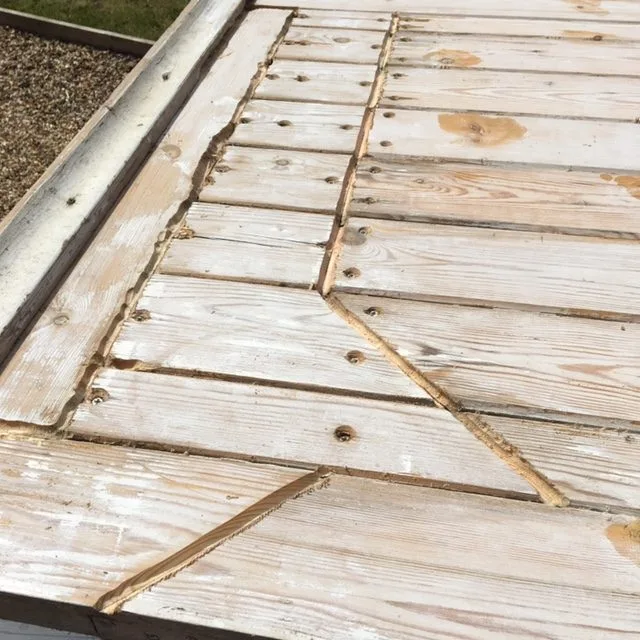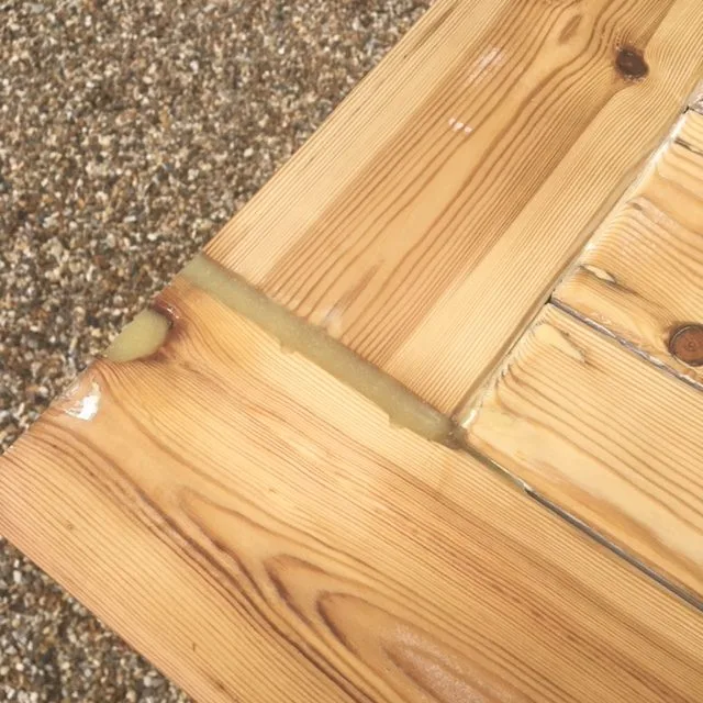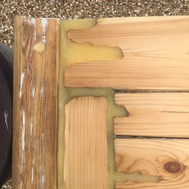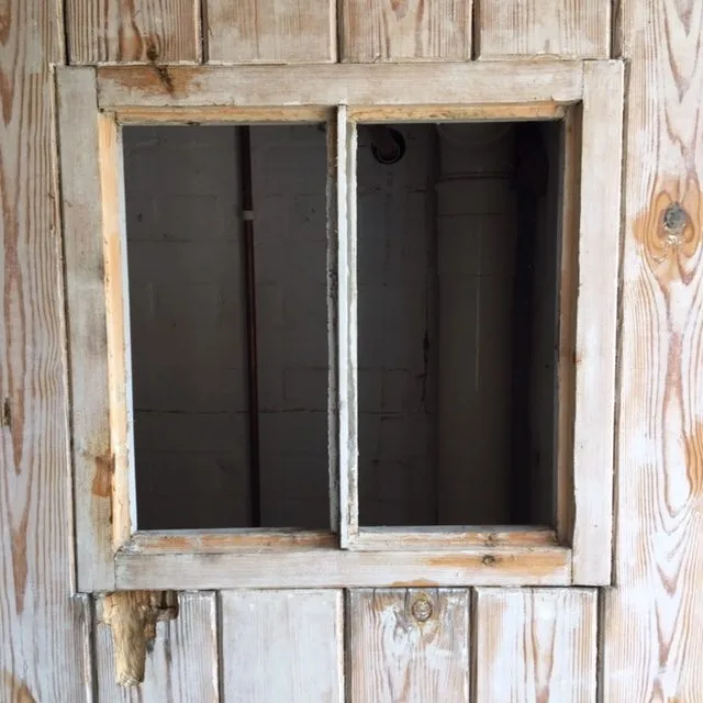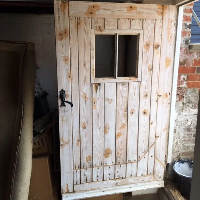A cellar door in need of repair, the frame, threshold and lower areas of the door had major rot. Previous repairs had been made using traditional splicing which split opening it up for the elements and resulting in further rot. All frame repairs were made using Accoya and threshold using Sappele in conjunction with Repair Care Dry Flex 4. Rot in in door rotted out back to stable wood and filled with Repair Care Dry Flex 4. The single glazing has been removed and argon filled 12mm double glazing has been fitted using Repair Care Dry Seal. All sanded back and treated with Grundijola wood preservative and then painted with Ican Grepp V and eico satin top coat.