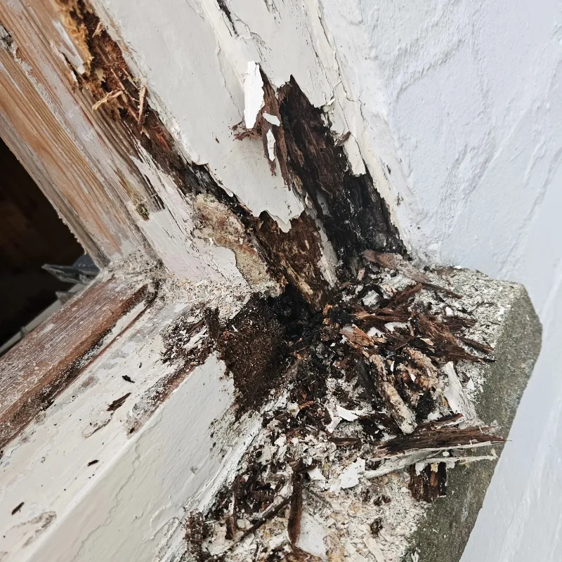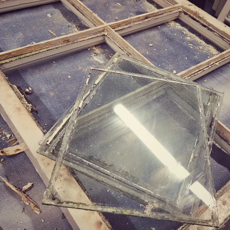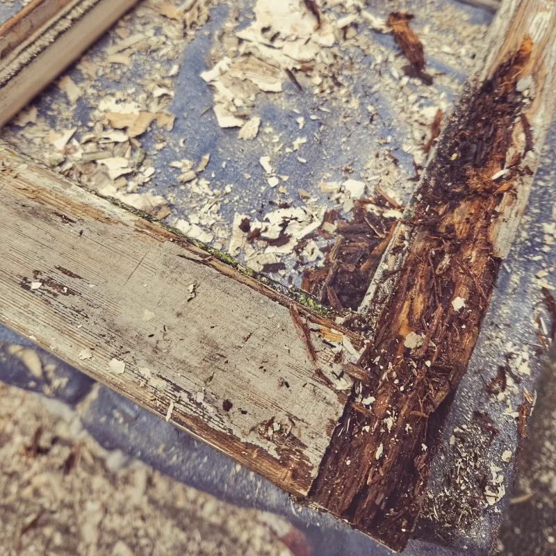 The first job was to dismantle the window and assess the rot damage. Once the sashes were removed thus could all be repaired using Dry Flex 4 and Accoya.