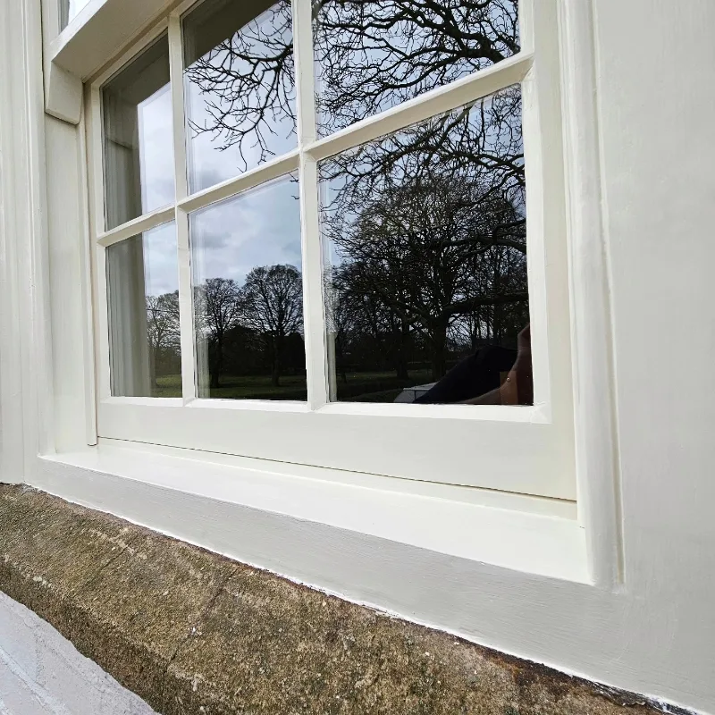 The whole project had a Teknos Aqua Top paint finish and the sashes were reinstalled with draught proof staff and parting beads, new sash cords and new weights to take into account the extra weight of the new glazing units.