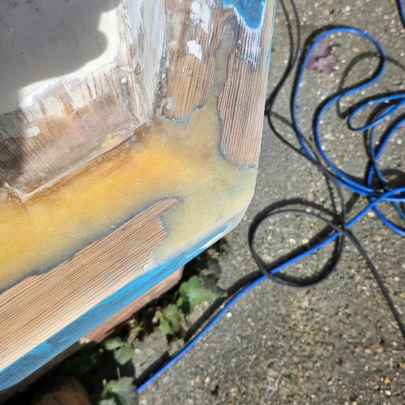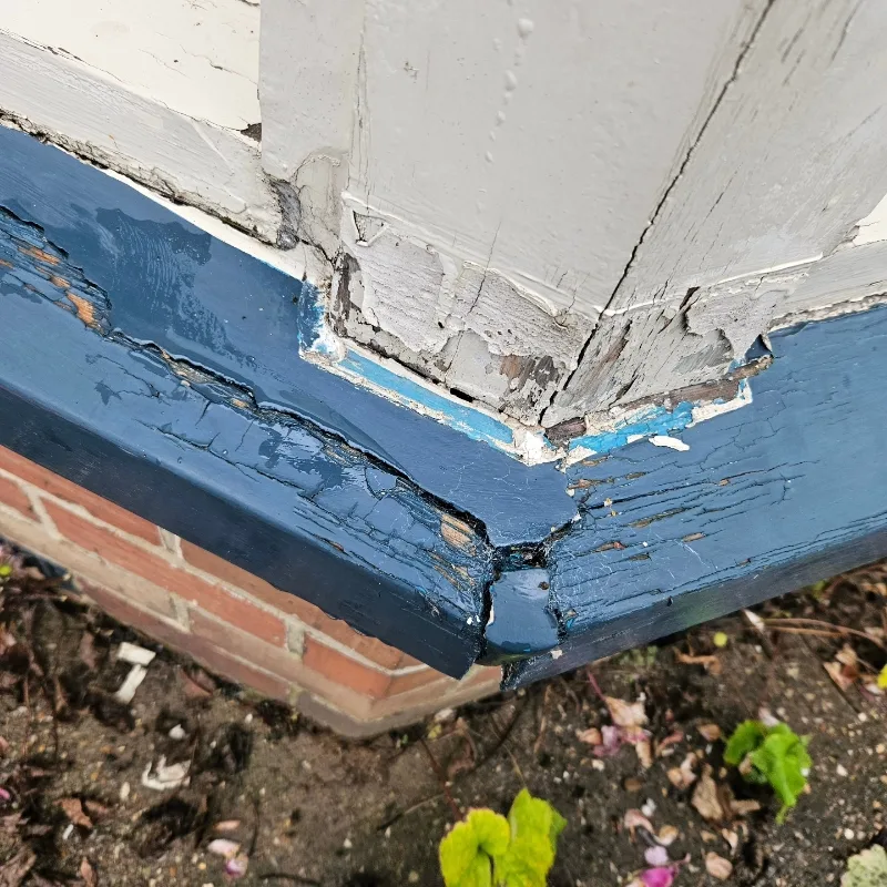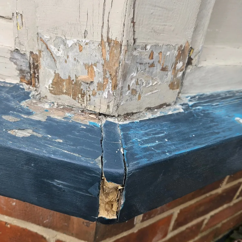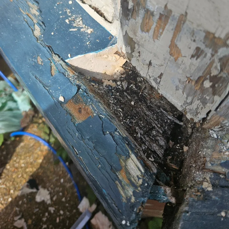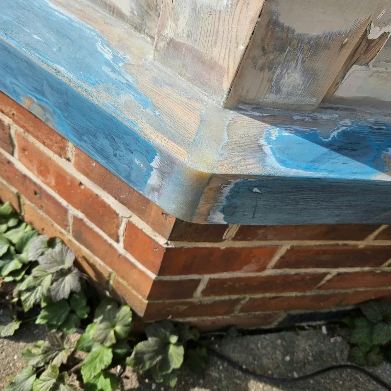 The old filler was removed and the underlying rot and decay removed before completing the repair using Dry Flex 4.